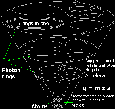 while already compressed sub photon rings are atoms and Mass is accumulation of atoms which can not be more compressed into heavier atom, by the force of the Earth gravity.